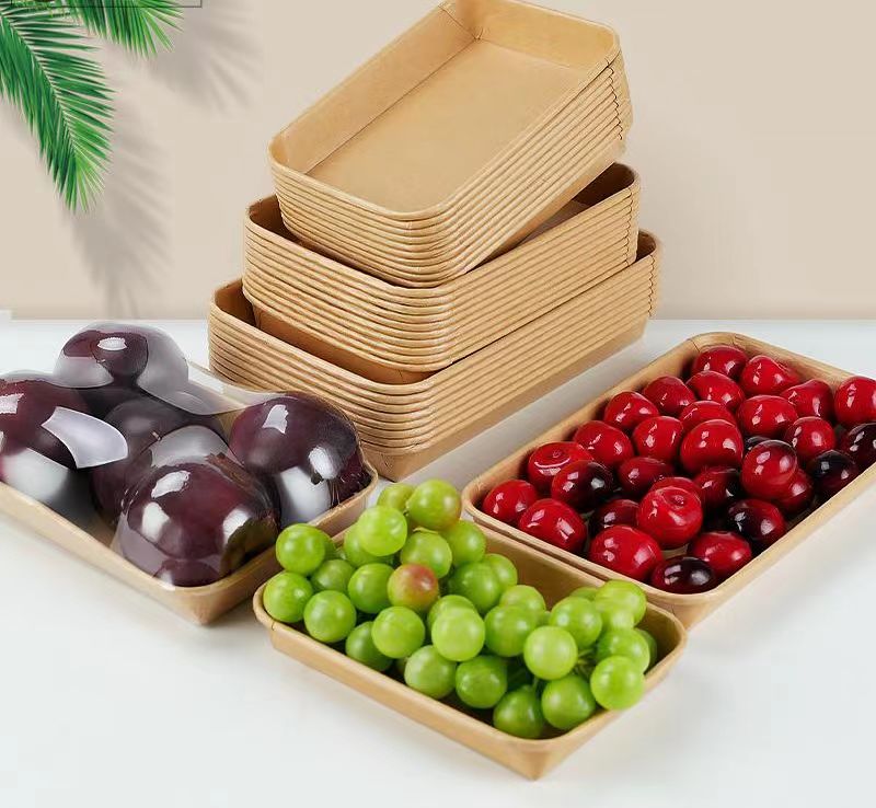 Le plateau en papier kraft à prix de gros est principalement utilisé pour l'emballage de fruits/légumes/sushi/pain/pâtisserie et autres produits.  Le plateau en papier kraft répond à la sécurité et à la santé de qualité alimentaire.​