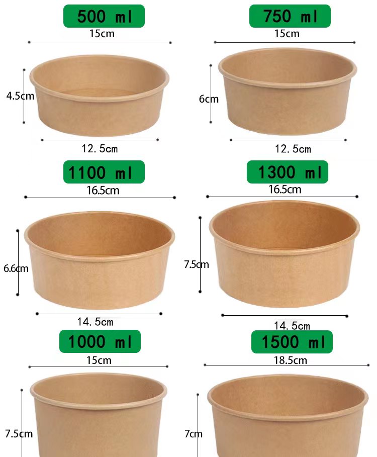 Bols en papier alimentaire jetables de bonne qualité avec couvercles, ils ont la meilleure propriété d'étanchéité et adoptent du papier kraft et blanc d'épaisseur, diverses spécifications et tailles peuvent répondre à vos différents besoins.​