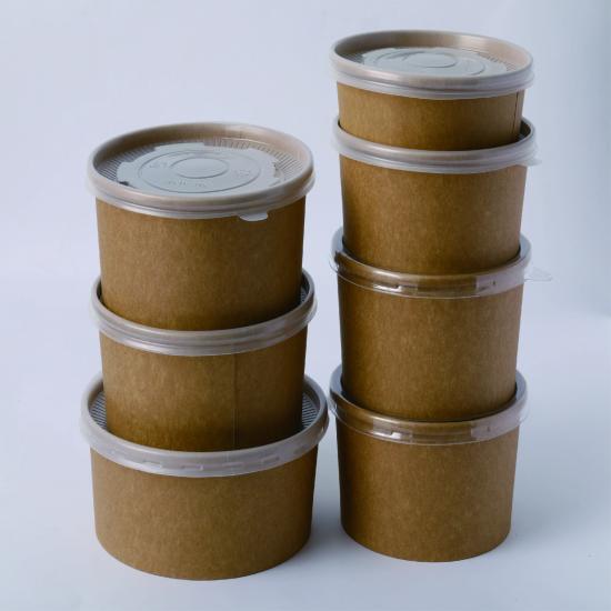 Bol en papier kraft jetable à prix d'usine Soonn avec couvercles pour salade/nouilles/pot chaud/soupe/dessert et autres emballages alimentaires.