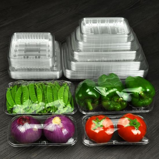 Plateau en plastique transparent pour légumes, plateau en plastique transparent pour fruits et légumes PET, haute perméabilité, pas de plateau de tréfilage.