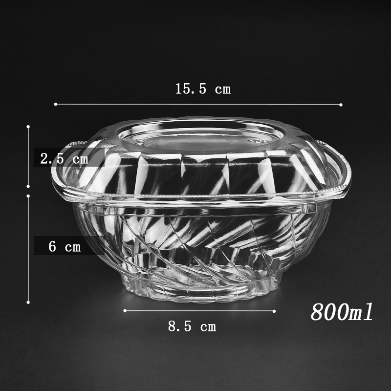 Boîte  d'emballage  de salade jetable  Récipient alimentaire transparent Bol de nourriture cuite   avec couvercles.