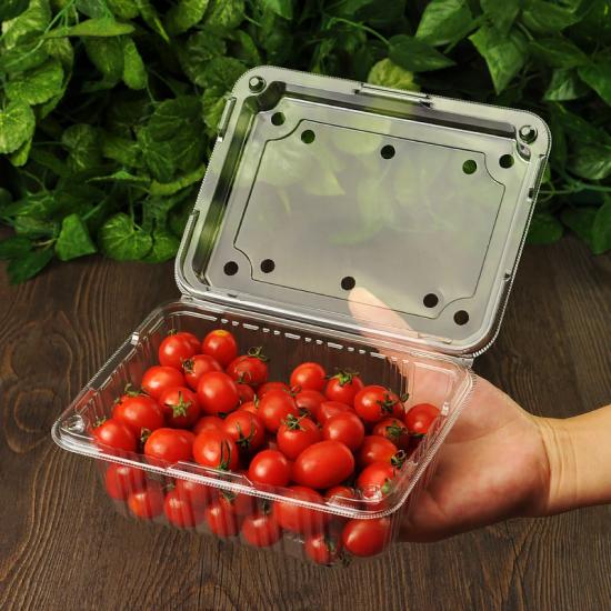 Boîte à clapet transparente pour fruits et légumes jetables en plastique PET respectueux de l'environnement et de bonne transparence.