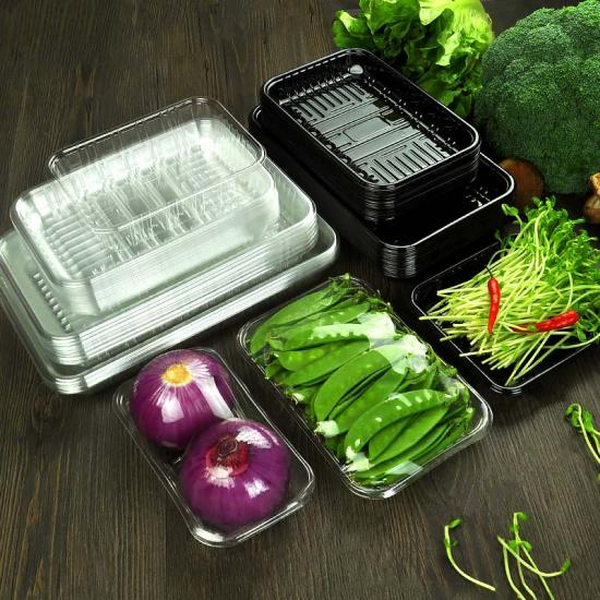 Plateaux jetables en PET, plateau en plastique transparent pour légumes,