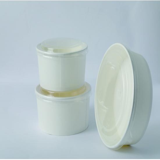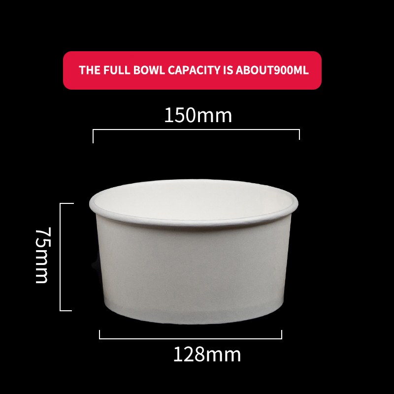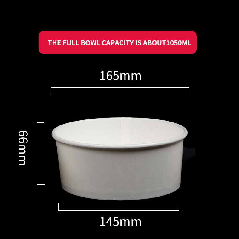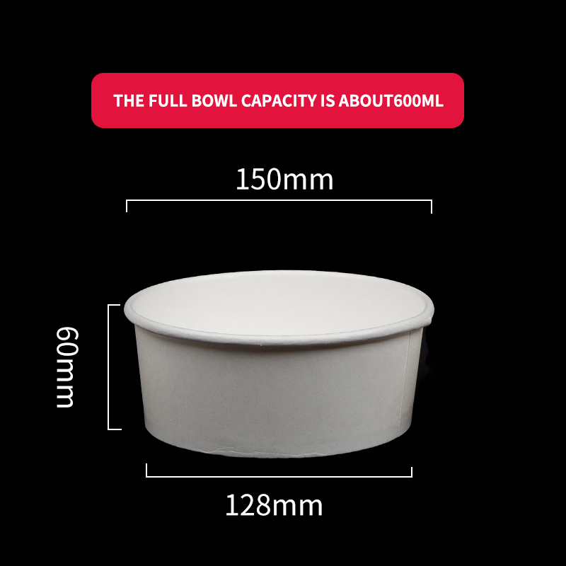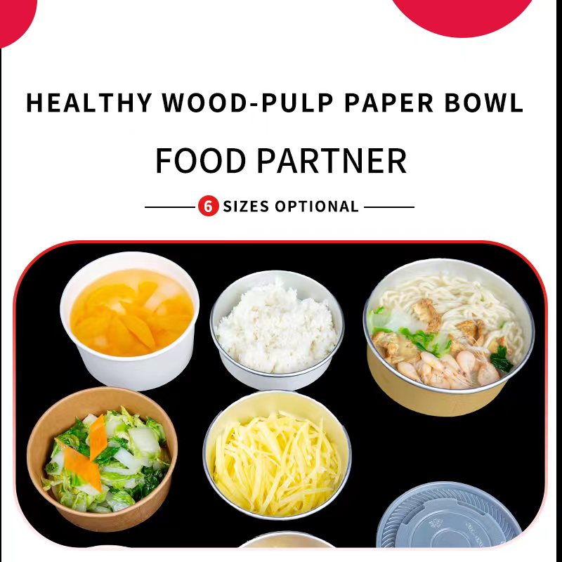 Nous avons un couvercle en PET pour chaque bol en papier. Il peut empêcher les aliments de se renverser.