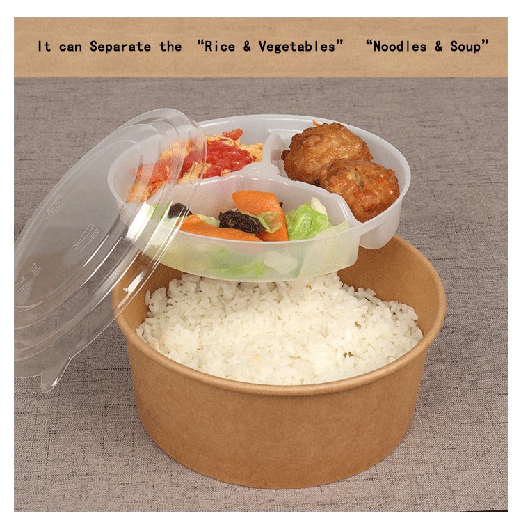 Bol en papier kraft jetable à prix d'usine Soonn avec couvercles pour salade/nouilles/pot chaud/soupe/dessert et autres emballages alimentaires.​